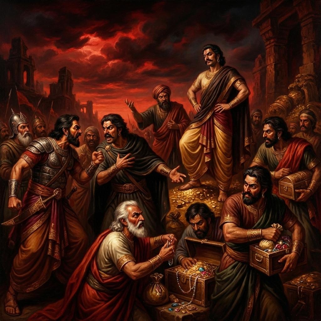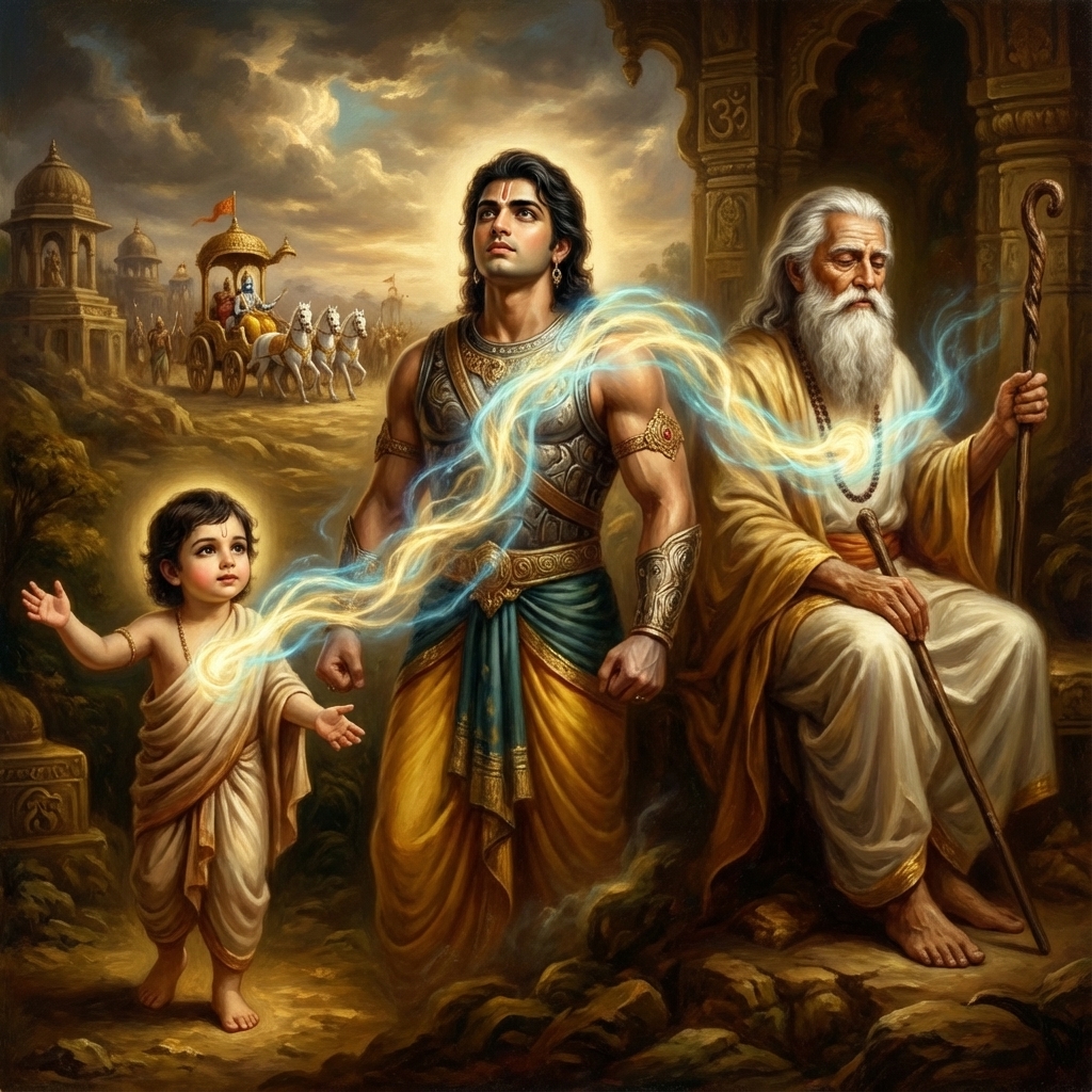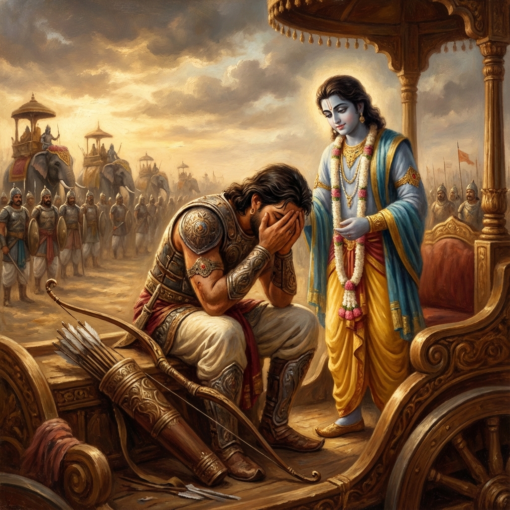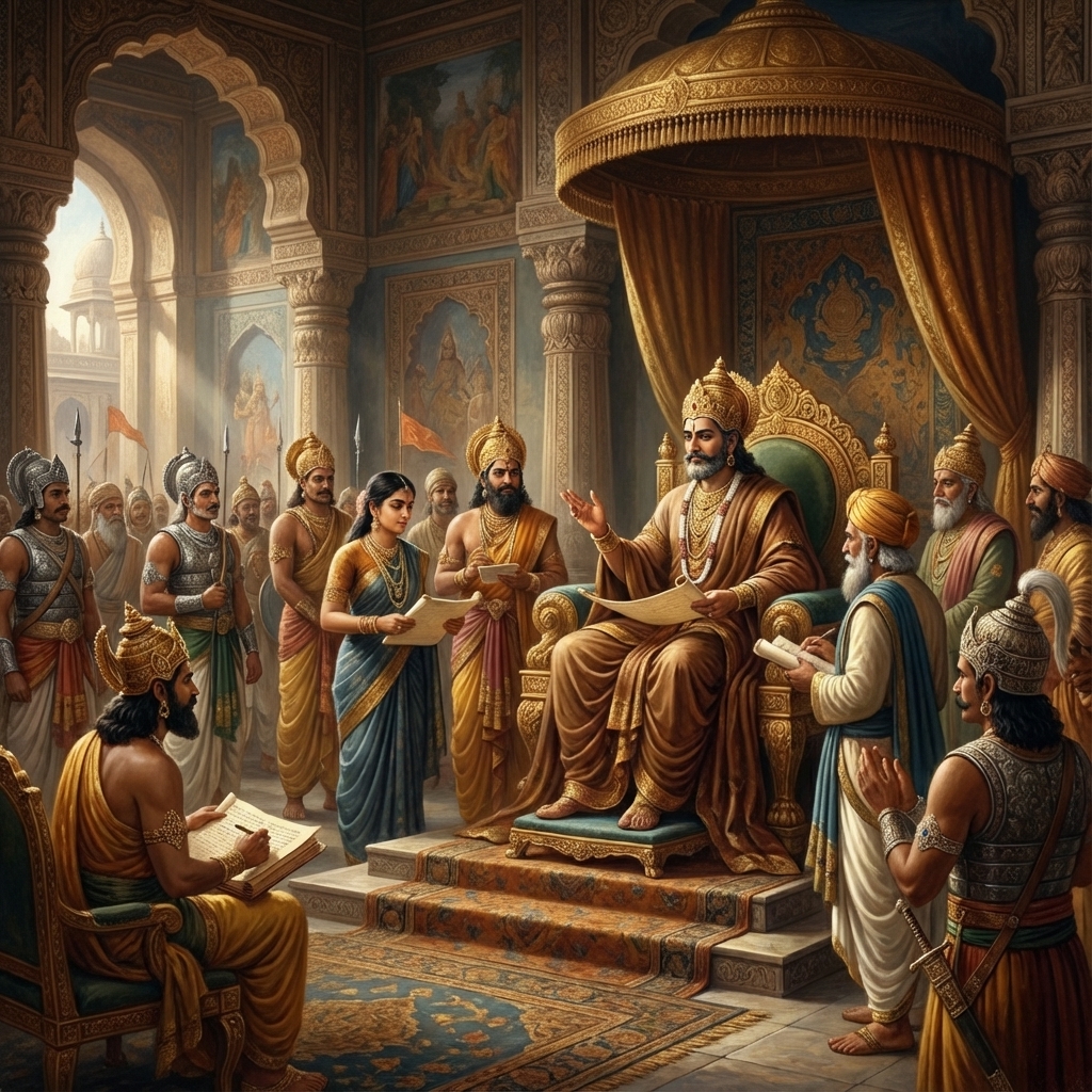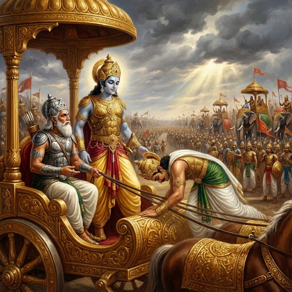 One of the two major Sanskrit epics of ancient India, narrating the struggle between two groups of cousins in the Kurukshetra War and the fates of the Kaurava and the Pandava princes.
