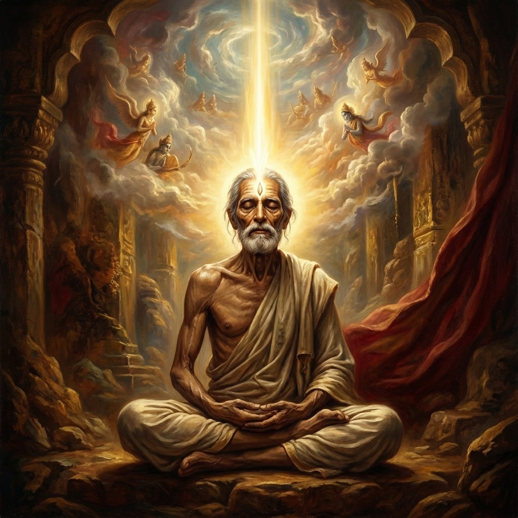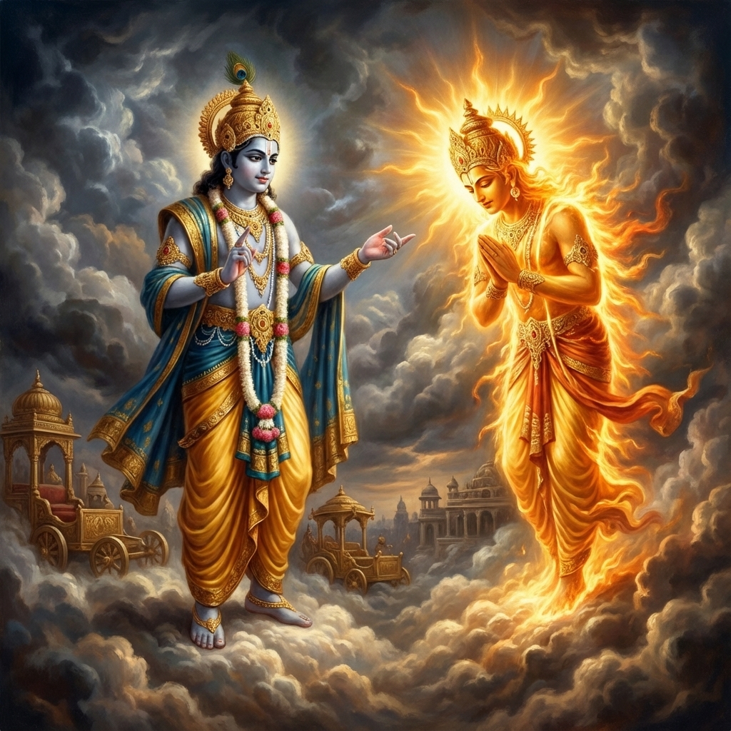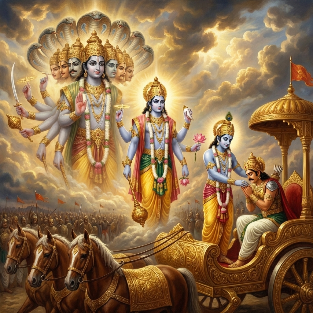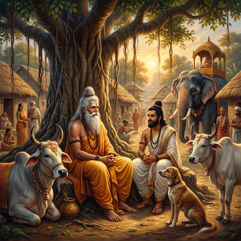 One of the two major Sanskrit epics of ancient India, narrating the struggle between two groups of cousins in the Kurukshetra War and the fates of the Kaurava and the Pandava princes.
