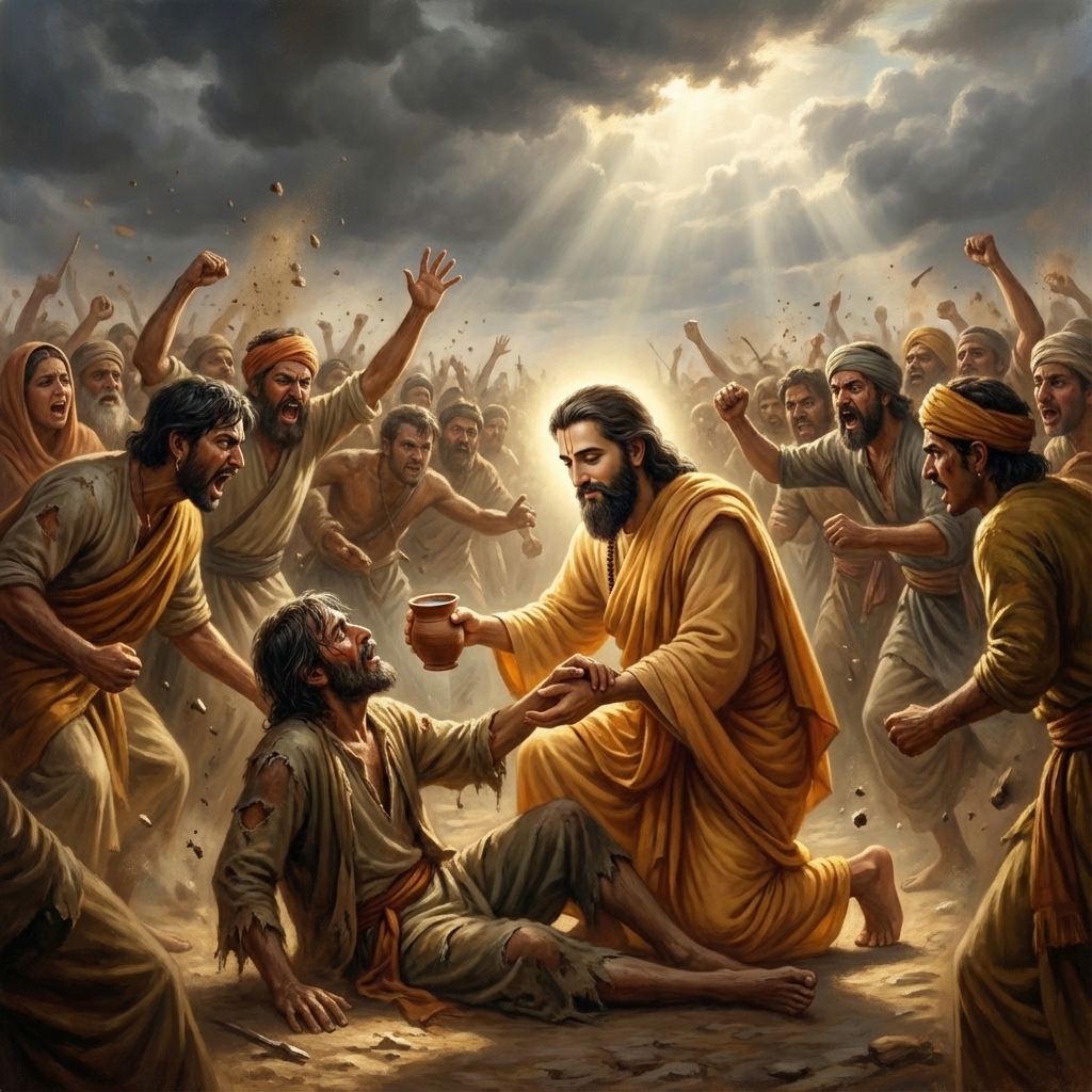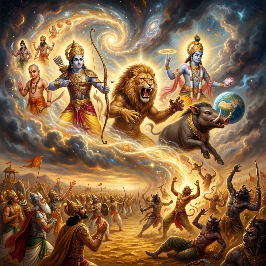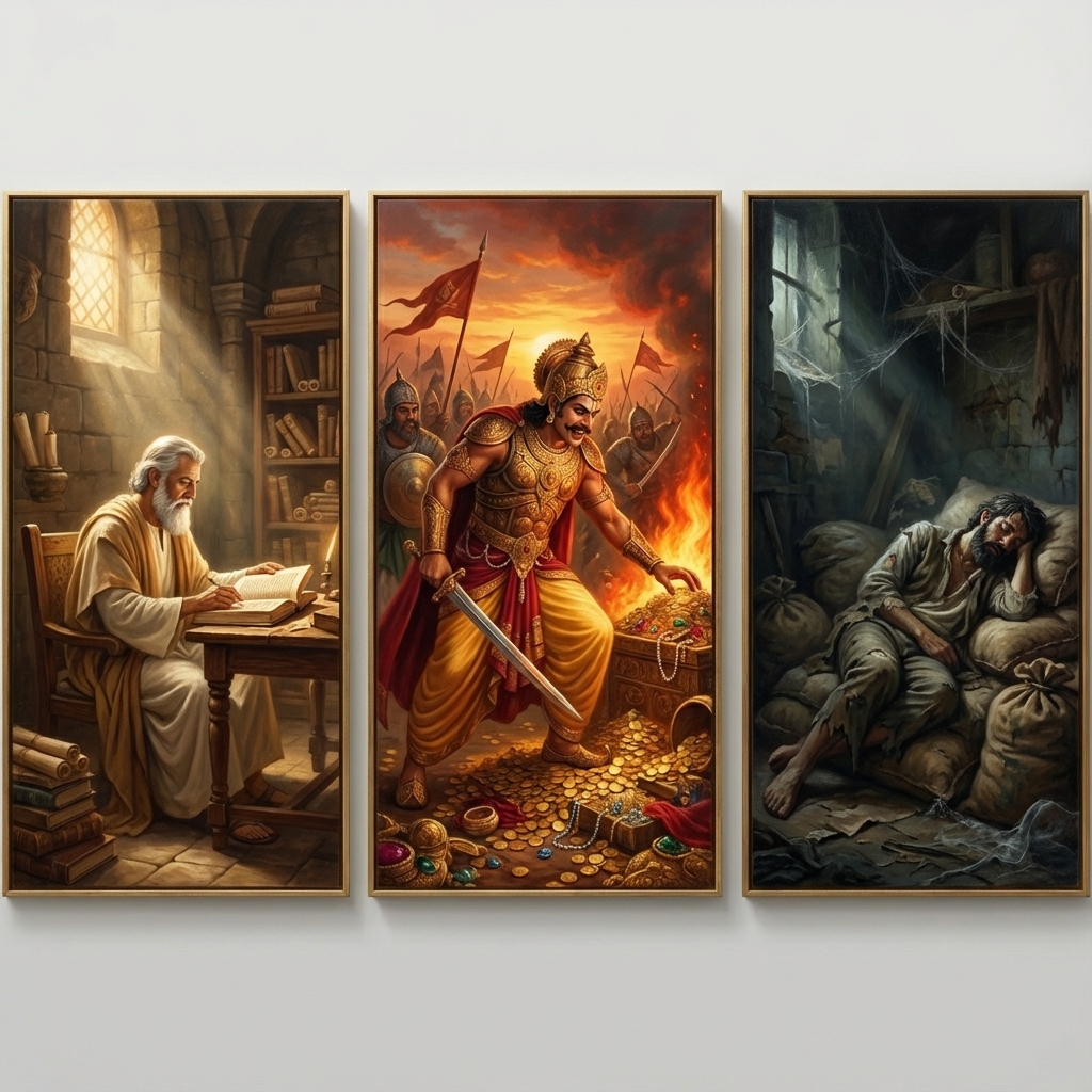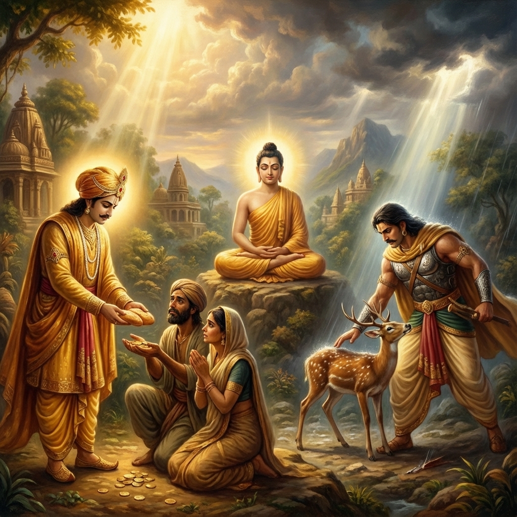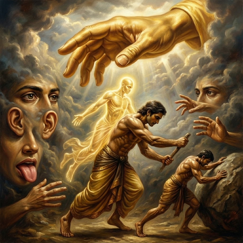 One of the two major Sanskrit epics of ancient India, narrating the struggle between two groups of cousins in the Kurukshetra War and the fates of the Kaurava and the Pandava princes.